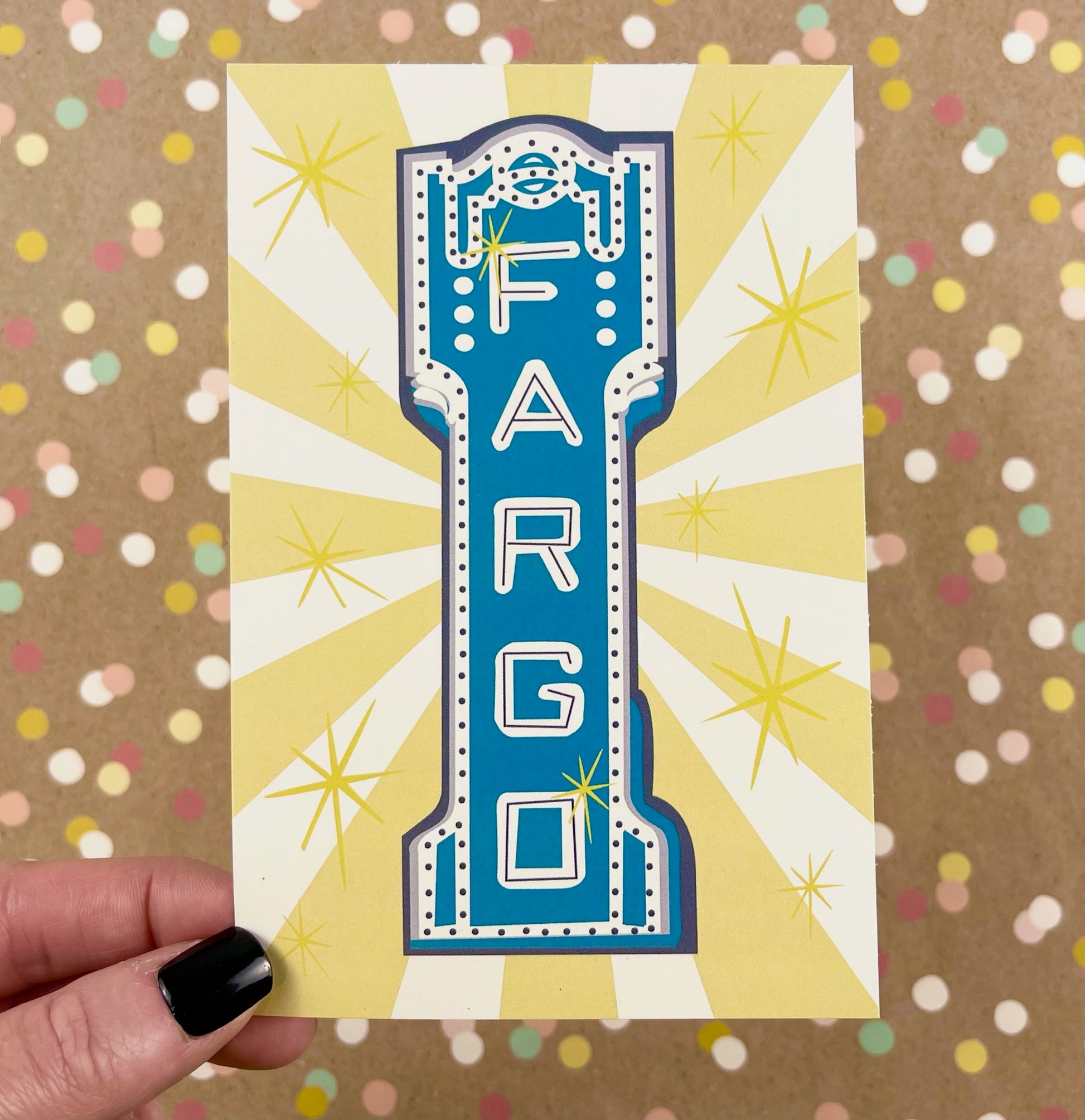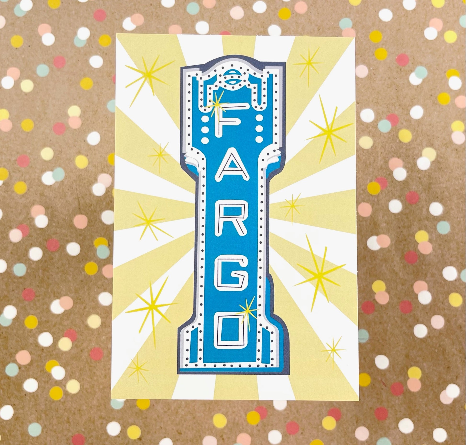 Retro style illustration of the iconic Fargo Theatre sign located downtown Fargo, ND.